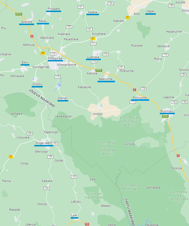 Põltsamaa vallas haldab Põltsamaa Vesi OÜ 12 reoveekogumisala. Nendeks on Põltsamaa, Kamari alevik, Adavere alevik, Puurmani alevik, Esku küla, Lustivere küla, Vägari küla, Pisisaare küla, Kalana küla, Võisiku küla, Neanurme küla ja Pikknurme küla. 2025 aastal on veel lisandumas hetkel arendusjärgus olev Pajusi küla. Viljandi vallas haldab Põltsamaa Vesi OÜ 2 reoveekogumisala: Kolga-Jaani alevik ja Leie küla.